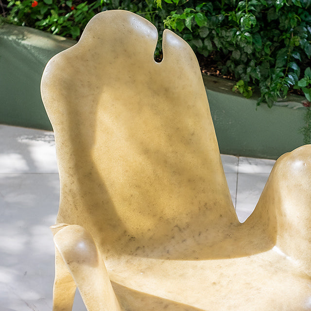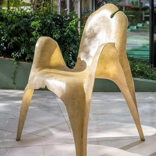 Chair with armrests in fiberglass structure with aged natural finish.